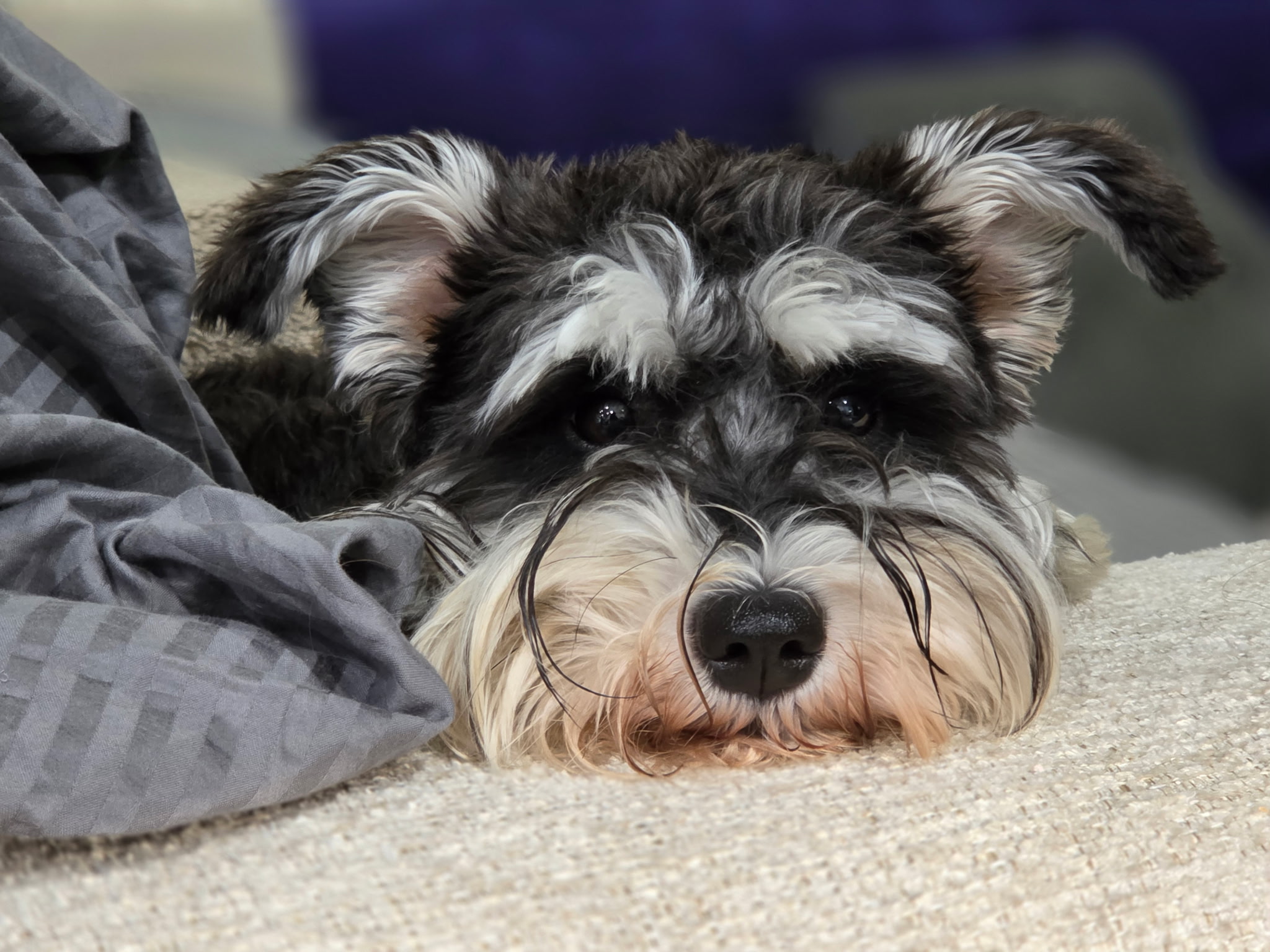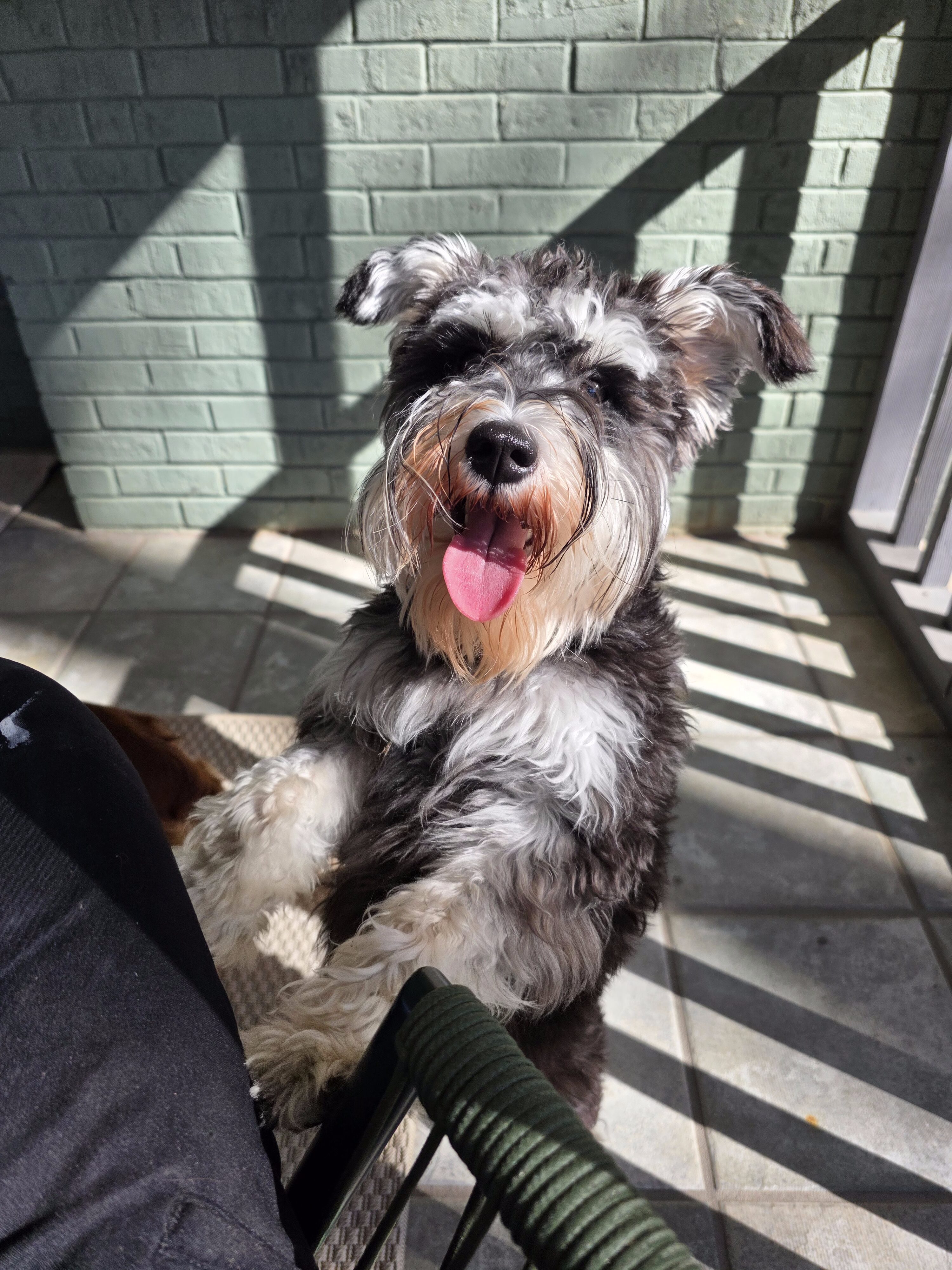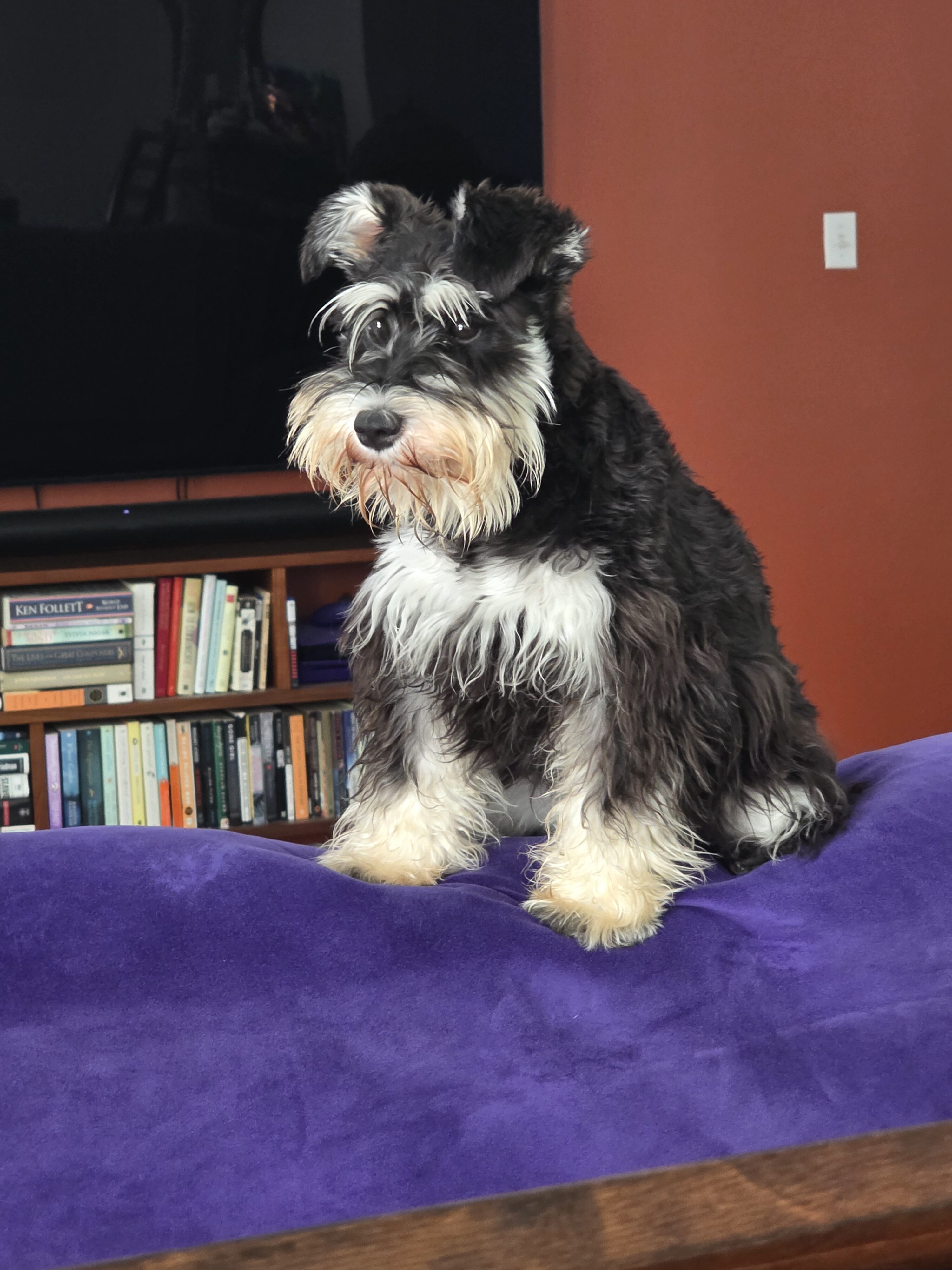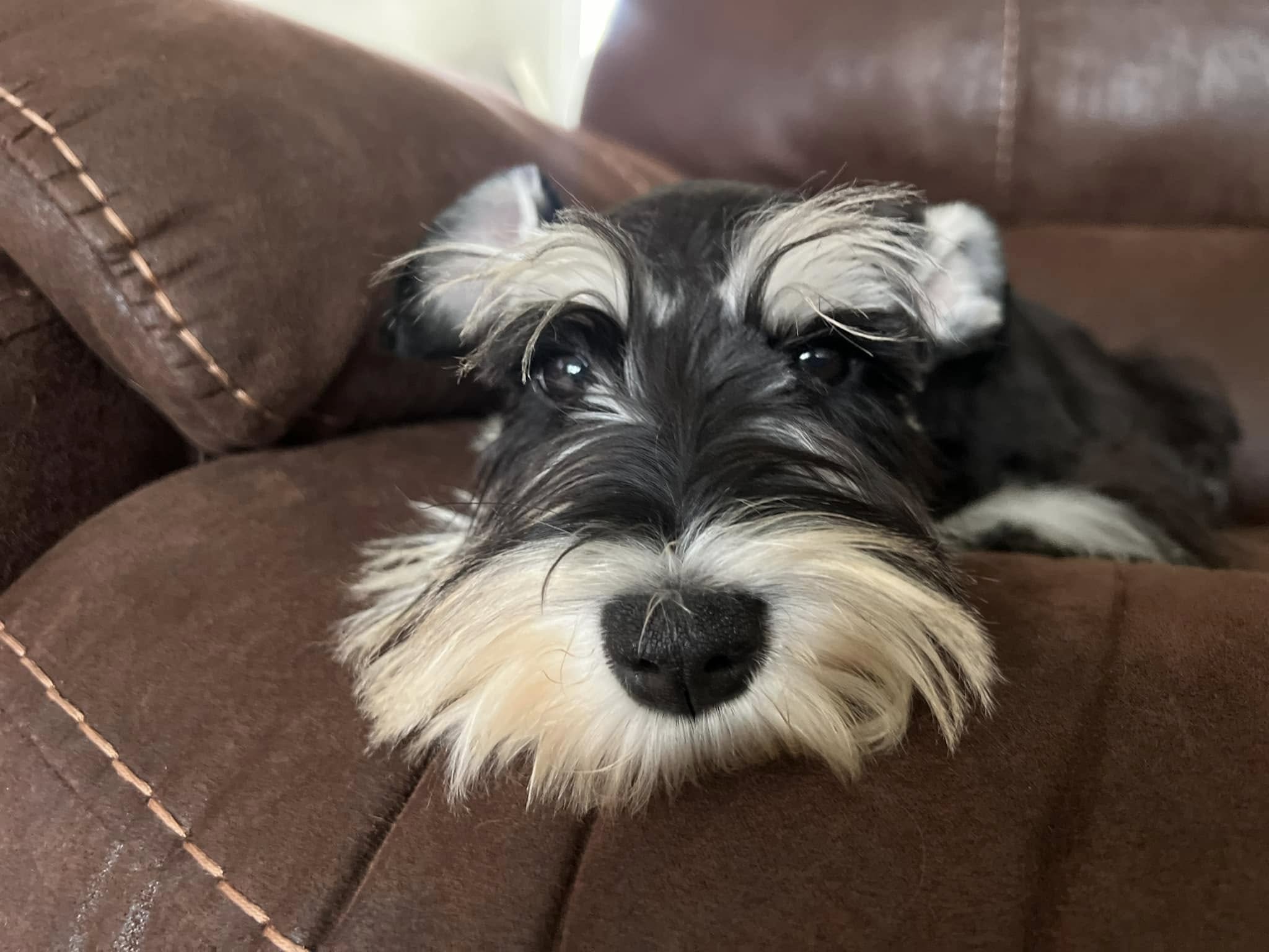 A spunky Mini Schnauzer keeping the team happy and focused.