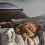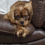Finnegan “Finny or Finnston” is a King Charles Cavalier Spaniel who is full of energy despite what his photos may suggest (don’t let the sleepy eyes fool you—it’s a tactical maneuver). Finny is sweet and cuddly with his two-legged family, treating laps like they are gold-plated thrones. However, he is feisty with his sisters, particularly when they mess with his highly critical scheduling (dinner is precisely at 6:00 PM, not 6:01!) or when they dare to steal his bones.