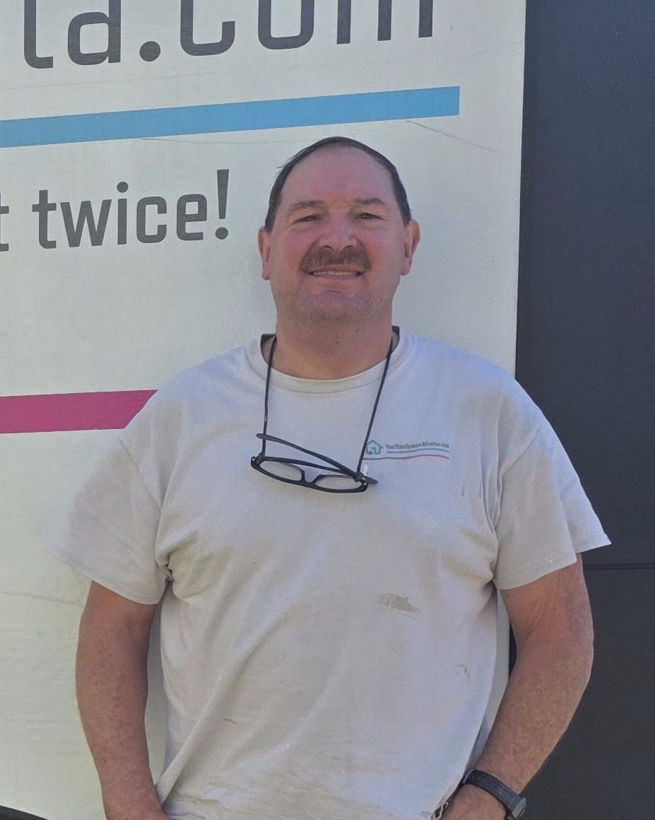 Close up of male handyman shaking hands with happy female client while standing at home kitchen0